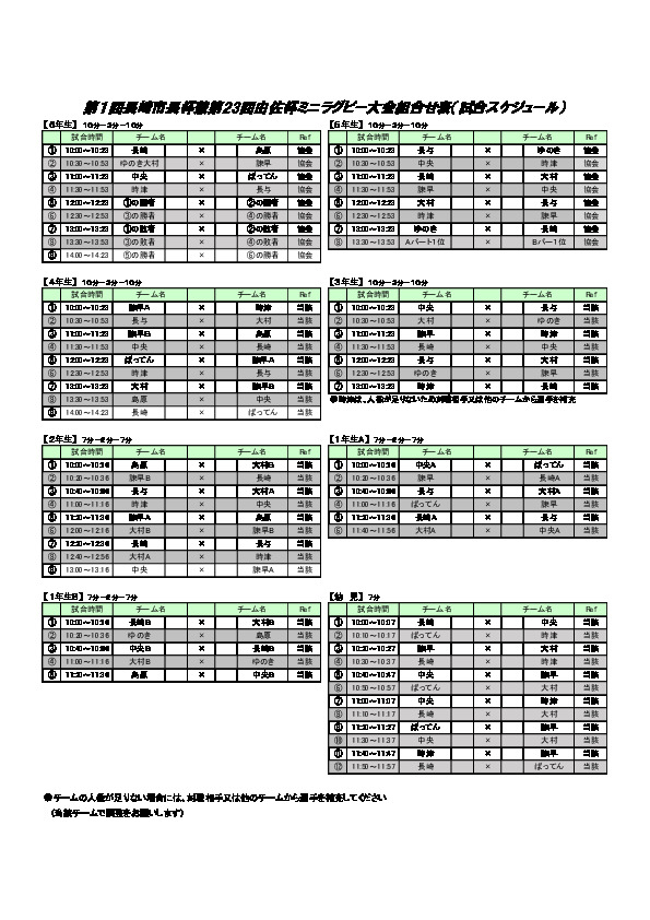練習グラウンド区分表