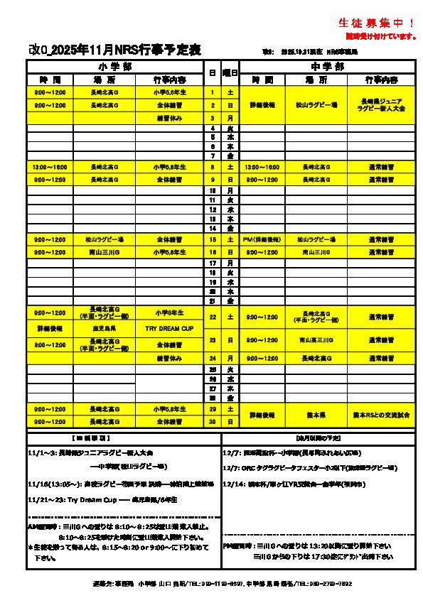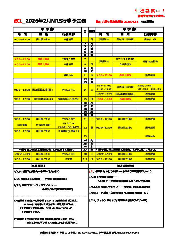 予定は変更することがあります。変更した場合は、差し替えますので、随時ご確認ください。